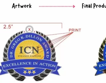 Before molds engraving or order production, usually will offer artwork for your final approval about size/ colors/ finishing/ font/ spelling and attachment etc.